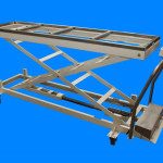 El movimiento de ascenso y descenso se produce por un moto-reductor de 24 Volts y un tornillo sinfín. Las tijeras transforman el movimiento horizontal en el vertical.