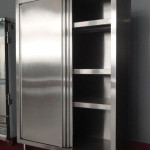 Armario simple construido totalmente con Acero Inoxidable calidad AISI 304, estantes regulables tipo rejillas o lisos. Puertas de apertura a 150°.