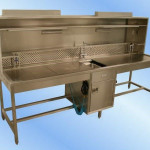 Somos los únicos fabricantes locales de este tipo de mesa de autopsia con extracción de vahos. Están especialmente diseñadas para realizar las tareas de disección de los cadáveres. Los formoles y vahos propios de los cadáveres pueden afectar al médico forense mientras realizan su tarea. Estas mesas tienen un equipo extractor con rejillas especialmente distribuidas para eliminar esos vapores eliminándolos al exterior